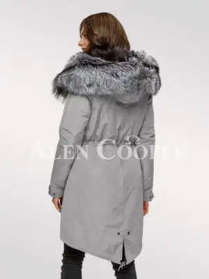 Scintillating Scandinavian Silver Fox Fur Hybrid Grey Parka Convertibles with Rabbit Liner for Today’s Women