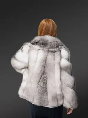 Womens Blue Fox Fur Coat with Shawl Collar– Fashion-Forward Outfit for Winter