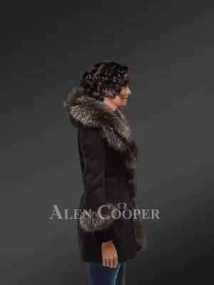 Fox Fur Hood Black Parka for Women with an Exquisite Furry Frontline