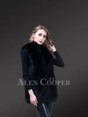 Women’s Mid-Length Genuine Fox Fur Winter Vest in Coal Black