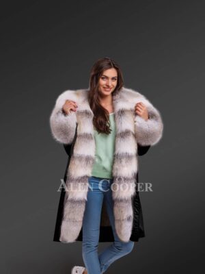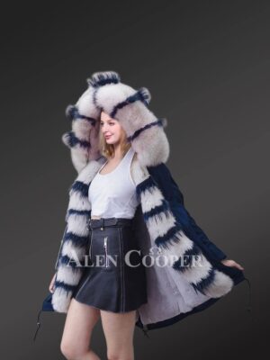 Women’s Fox Fur Long Parka with Stylish Frontline and Hood
