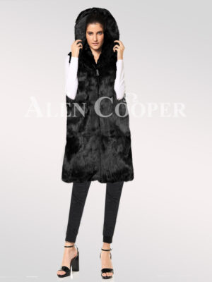Craze For Ladies’ Arctic Fox Fur Hybrid Black Parka Convertibles with Rabbit Liner