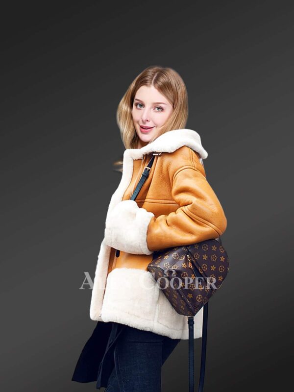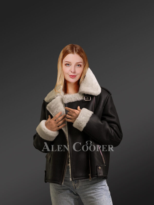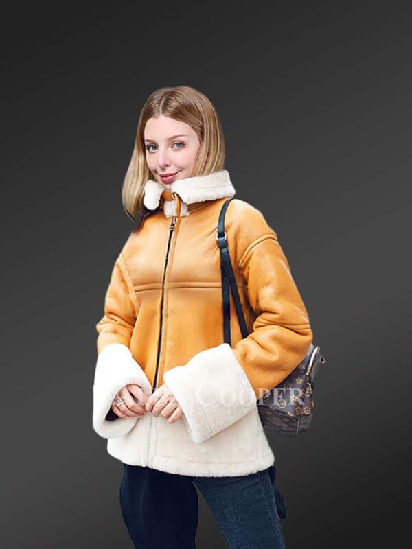 Sheepskin Shearling Jacket for Women in B3 Bomber Style