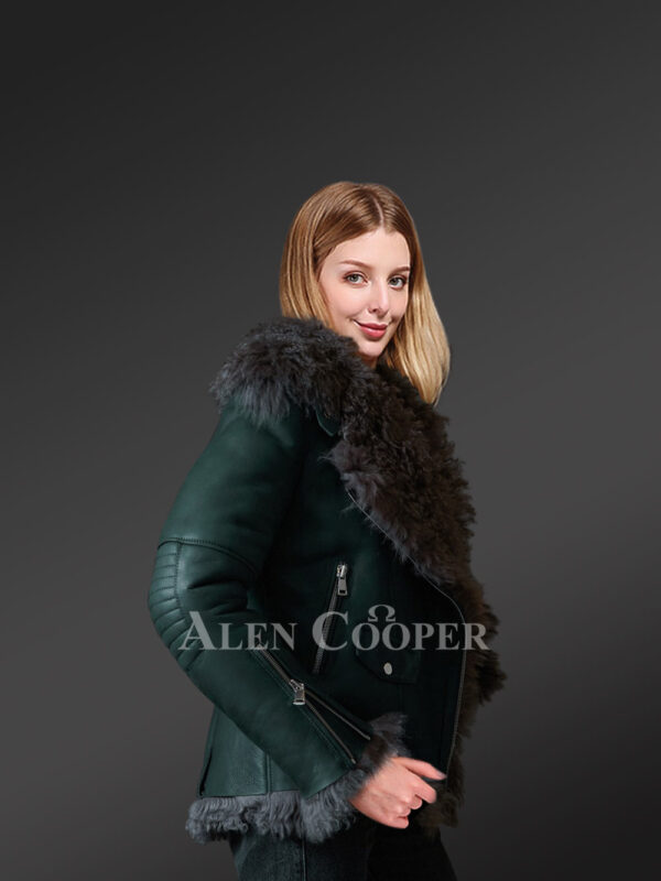 Emerald Color Toscana Shearling Jacket to Redefine Regal Taste of Women