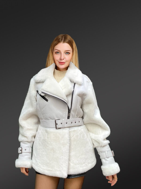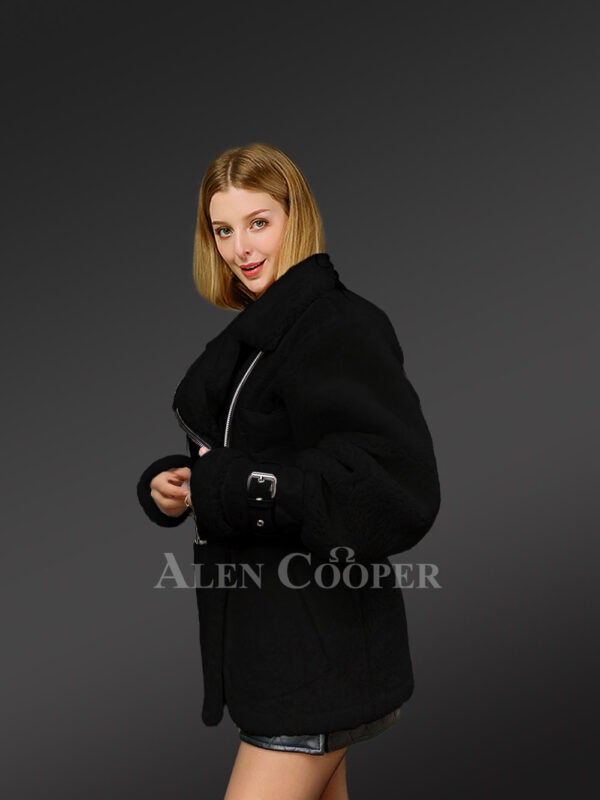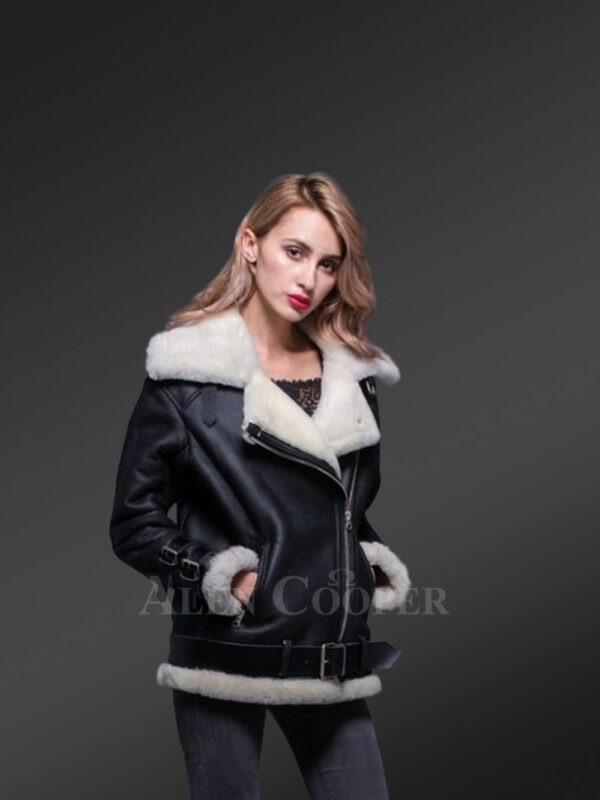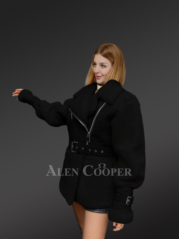 Sheepskin Shearling Jacket for Women with In-Built Belts