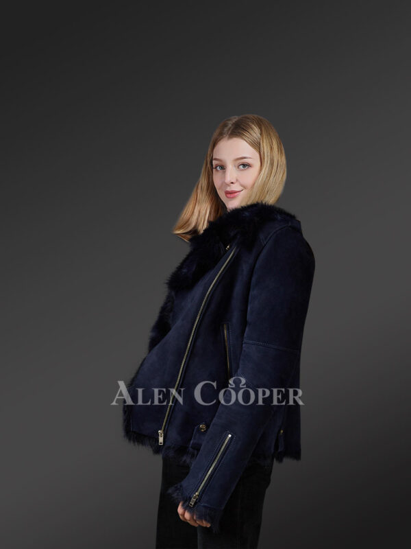 Navy Blue Toscana Shearling Jacket for Women