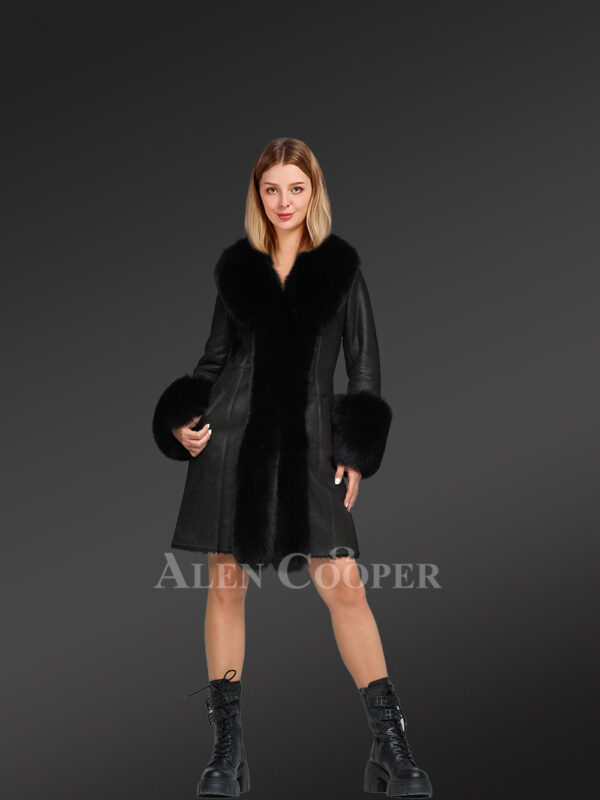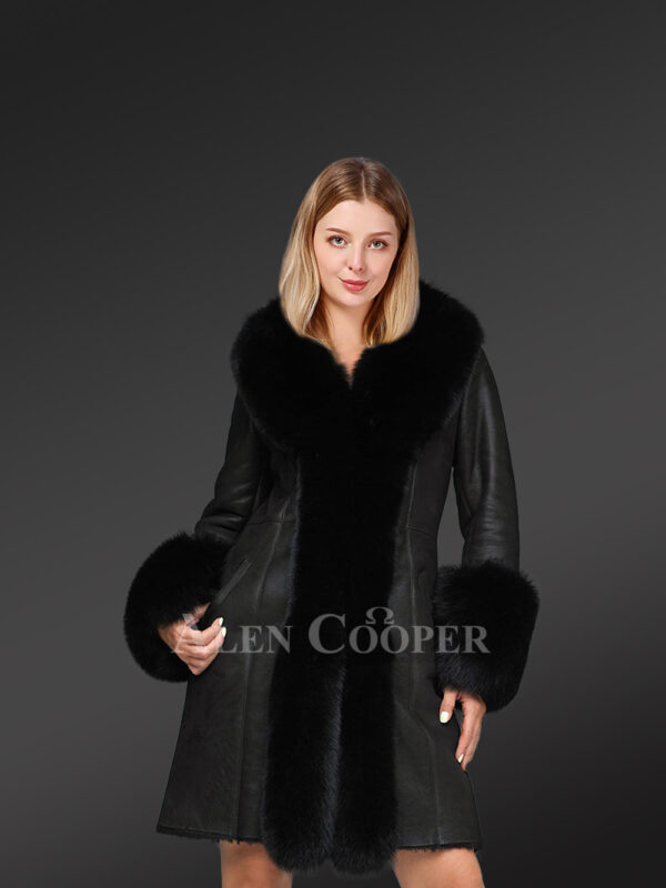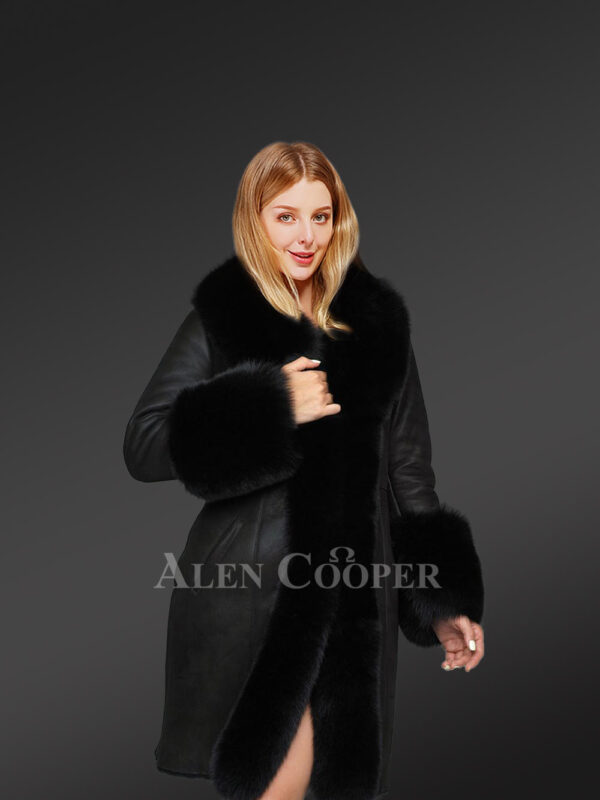 Womens Long Sheepskin Coat with Fox Fur Frontline
