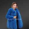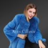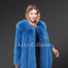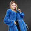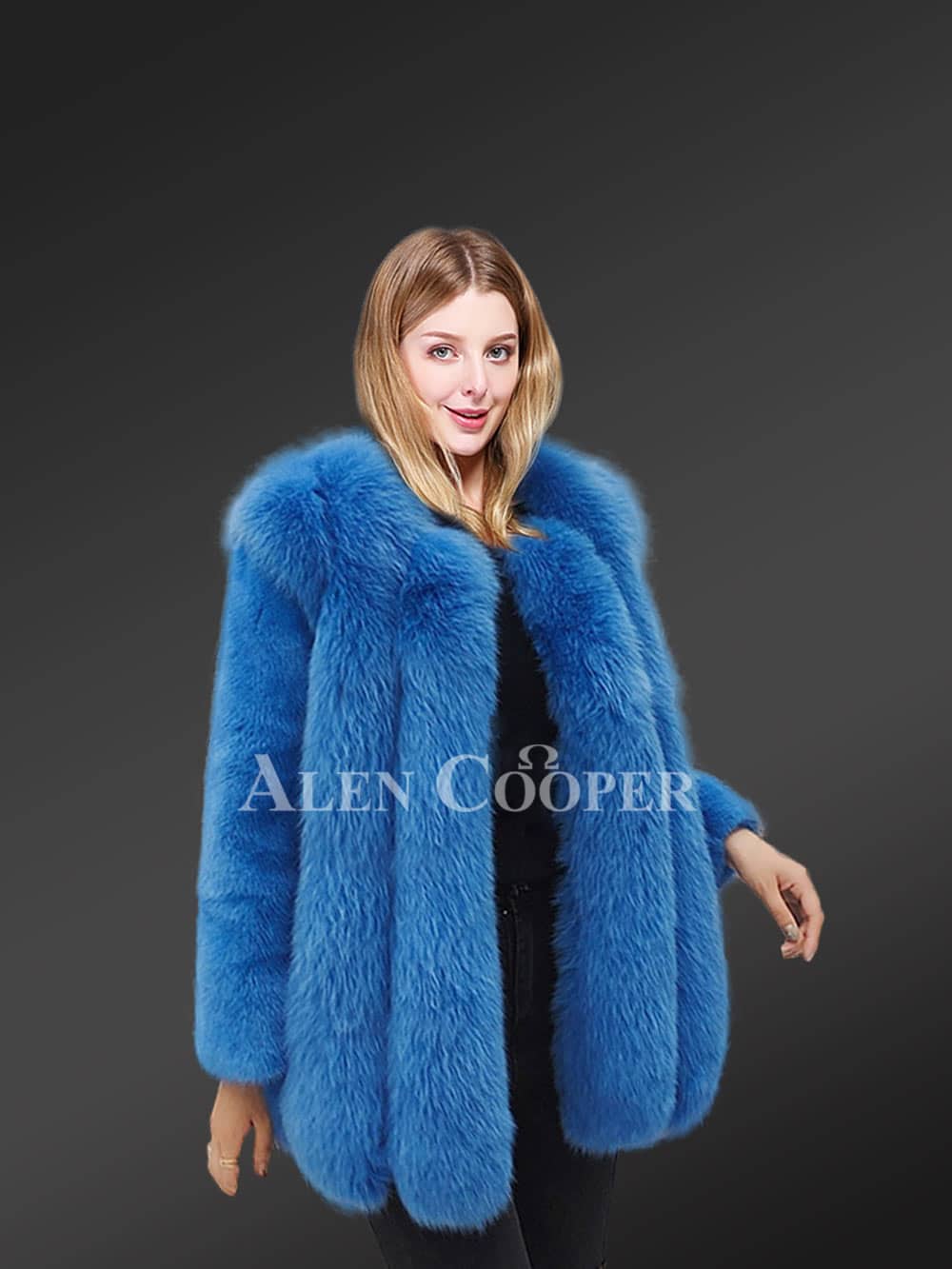 This luscious coat is made from superior Arctic fox fur and features a dense finish with front open clip lock hooks. It has vertical stitch detailing throughout the whole body for a voluminous look. The premium quality arctic fox outerwear is a classy yet trending piece in the fashion industry. The eye-catching paragraph-style long coat uplifts the coat to high fashion. The full-length baggy sleeves are made from full-skin mink fur also dyed blue. The mixed fur winter coat is a perfect fit for a timeless look.