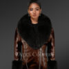 - The innovatively designed jacket fuses genuine leather with authentic fur plates