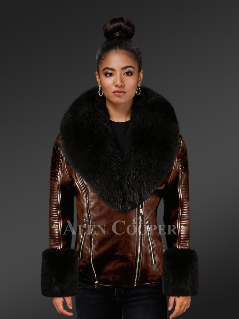 - Unlike the other varieties of the product this leather jacket with fur collar guarantees perfect fit for everyone without considering individual height or structure