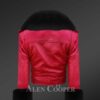 Authentic Leather Jackets in Burgundy with Removable Fur Collar and Handcuffs for Women