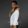 Authentic White Leather Jacket with Removable Fur Collar and Handcuffs