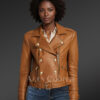 Quality lamb leather ensures longevity. Exceptional Italian Aniline finishing touch contributes to its silky and glossy appearance. The glaze of the polished leather enhances the beauty. The interior satin lining is of superior quality and is known for lending an opulent feel . High-waist jacket is made to be lightweight and breathable. As a result, it makes a pleasant outerwear and is best suited for unexpected lengthy rides.