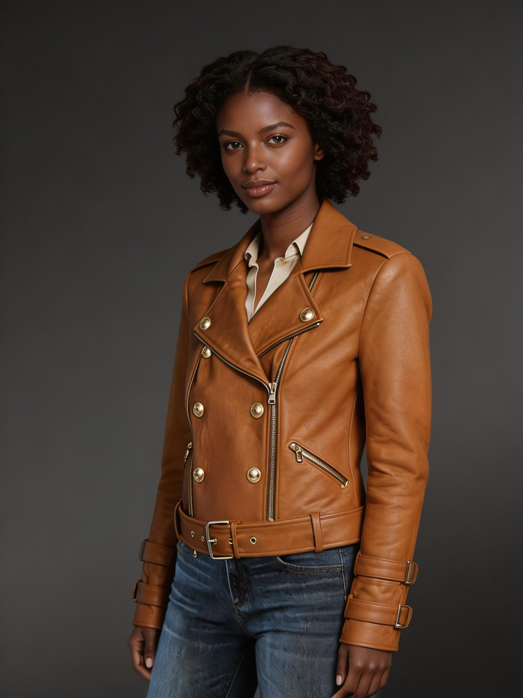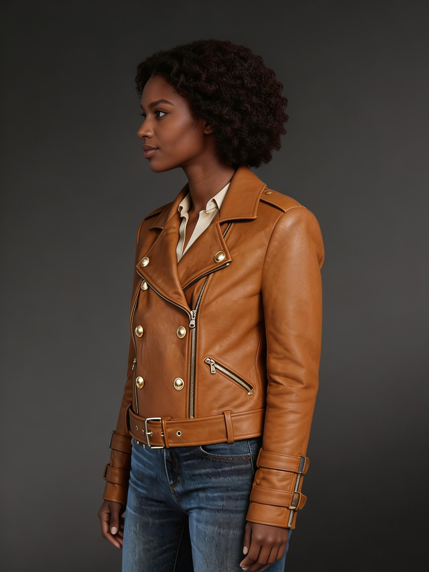 Introducing the belted leather biker jacket – a fresh take on women’s coherent fashion. It is a luxurious wear that equally satisfies the standards for being ultra grand. It is simple-built but equipped with additional accessories which highlight its eloquence amidst the simplicity.