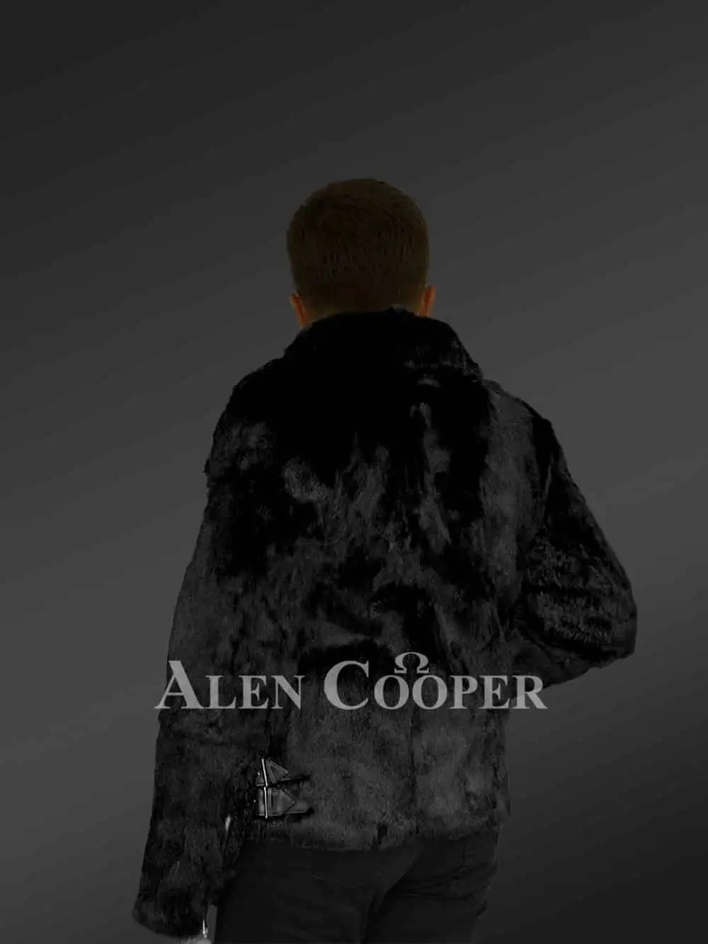 This fashionable biker rabbit fur jacket exudes glamour owing to its pitch-black shade and unrivaled design. The asymmetrical orientation of the zipper adds a classic stance to this jacket’s bold look. Wearing this winter-wear can markedly elevate one’s appearance. This furry outerwear is not just for formal or social parties. It is equally suitable for solo bike rides or trips with friends during winter.