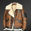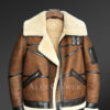 Adding a different vintage vibe with sophistication and charm, the tan brown suede finish jacket is completely designed by hands. Made out of authentic pelts of shearling or lambskin, the Moto style biker shearling jacket is enhanced with practical features and functionality.