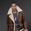 Biker Shearling Jacket in Tan Brown for Men