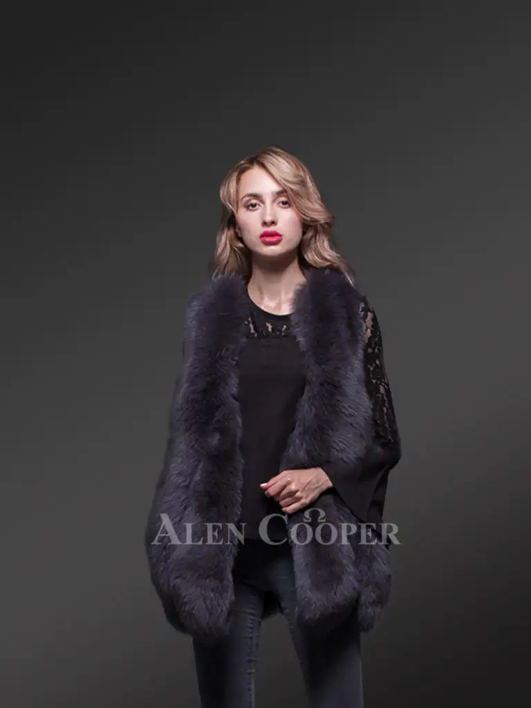 The best part of the black A-line fur vest is that there are 3 parallel fox fur pelts co-joined together. The design has been done in such a way that it looks like an A-line cut. There are spacious and hand-warming side pockets to keep your palms warm and comfortable.