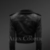 Women’s Short Length Real Leather Black Biker Jacket with Asymmetrical Zipper Closure