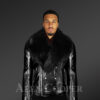 Black Motorcycle Leather Jacket with Fox Fur Collar