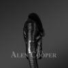 The inventively designed black hued Men Leather Biker Jacket features a wide lapel with a dense fox fur design, chrome-finished asymmetrical zippers placed on the right, and front design snap buttons. Also the jacket hosts extremely stylish zippered sleeves, and zippered hand-warming side pockets along with other stunning elements.