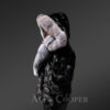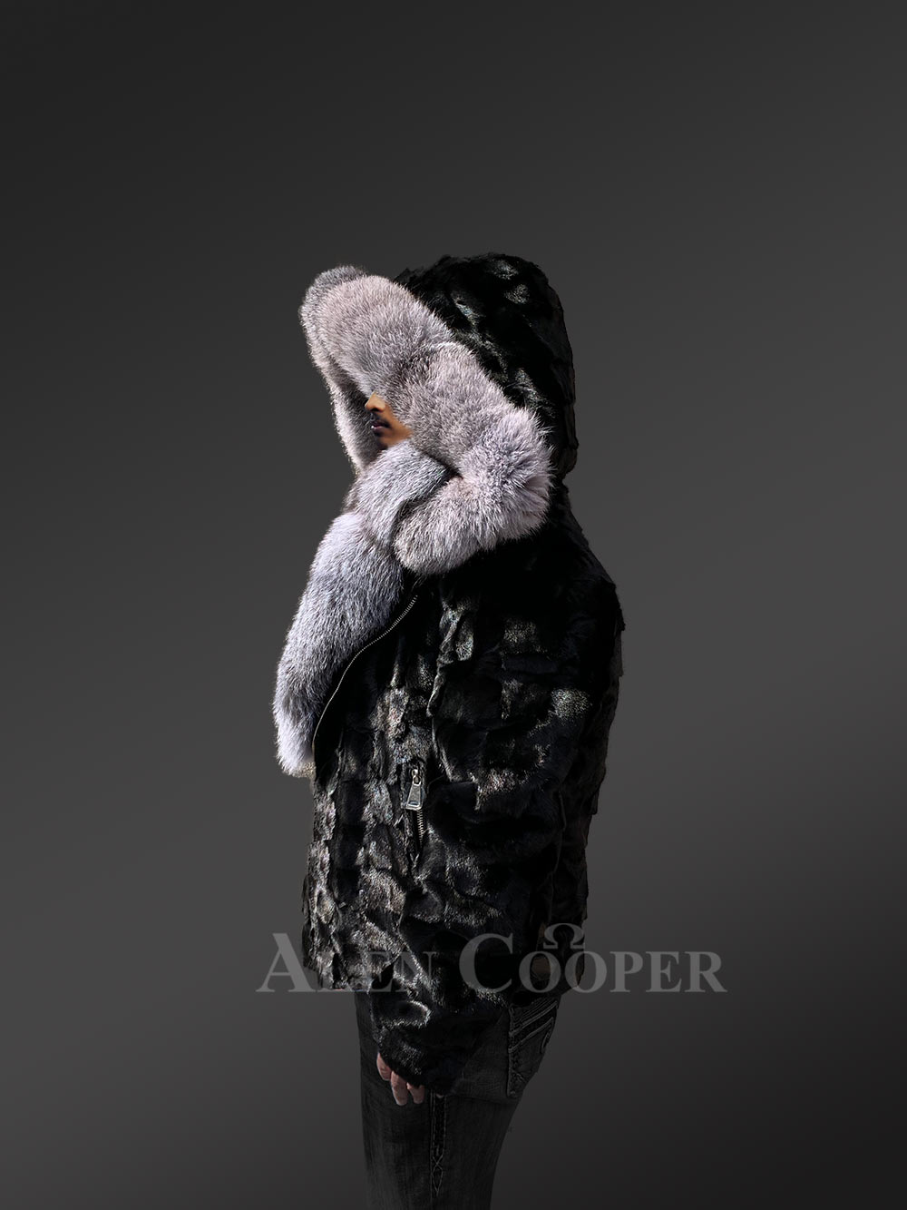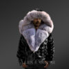 With a detachable hood and a notched lapel, this biker jacket offers ultimate protection from the cold in winter. Trims of silver fox fur accentuate the border of the hood and shields the face from cold wind. The broad lapel of Silver fox fur can completely cover the front as well as the back of the neck. Lower part of the lapel brings the unmatched warmth of fox fur to the front part of one’s body. One may keep this jacket open or may close it using a metal zipper in the front. It has chrome finish for durability.