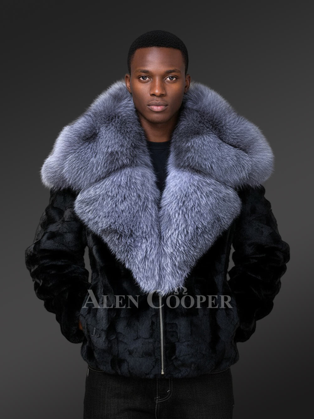 With a detachable hood and a notched lapel, this biker jacket offers ultimate protection from the cold in winter. Trims of silver fox fur accentuate the border of the hood and shields the face from cold wind. The broad lapel of Silver fox fur can completely cover the front as well as the back of the neck. Lower part of the lapel brings the unmatched warmth of fox fur to the front part of one’s body. One may keep this jacket open or may close it using a metal zipper in the front. It has chrome finish for durability.