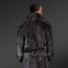 This luxurious black mink coat for men is indeed a testament to refined craftsmanship. Gifted designers have used finest quality lrish mink fur to create a pea-coat which boasts of impressive looks and premium quality. The sections of fur from minks’ paws have been used in designing which gives this pea-coat its unique wavy texture. Durability of mink fur ensures no change in quality and no loss of aesthetic appeal even after years of use. With classy looks, this pea-coat seems befitting for the semi-formal events and casual affairs, such as outings, trips or nighttime revelries.