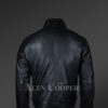 - Luxurious black ‘moto’ jacket of lambskin leather exudes a classy charm with smooth texture