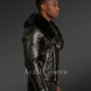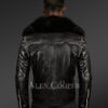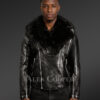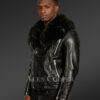 Black Motorcycle Leather Jacket with Fox Fur Collar for Men