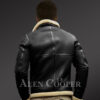 There are spacious hand-waring side pockets that will keep your palms warm and comfortable even in extreme weather conditions. Another enhancing feature of the jacket is the woollen layer of the fabric. The woollen lining is flipped and exposed to certain areas of the Shearling Jacket. This includes the jacket collar, zipper lining, cuffs of the wrist area and the lower waistline.