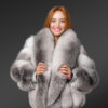 This luxurious womens Blue Fox fur coat with shawl collar is undeniably a masterpiece that boasts of exquisite looks. Starting from the helical arrangement of pelts on the sleeves to the long shawl collar, this short coat is handcrafted to become the center of attention everywhere. It also brings the comforting warmth of fox fur that combines the protection of long guard-hair and coziness of dense undercoat. This is a lightweight outfit for casual as well as semi-formal events or occasions. Whether it’s a business party,a brunch or nighttime revelry, this coat is going to glamorizealloutfits.