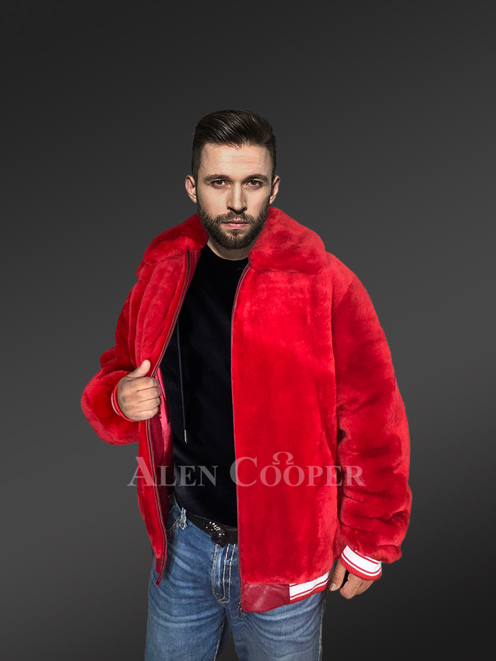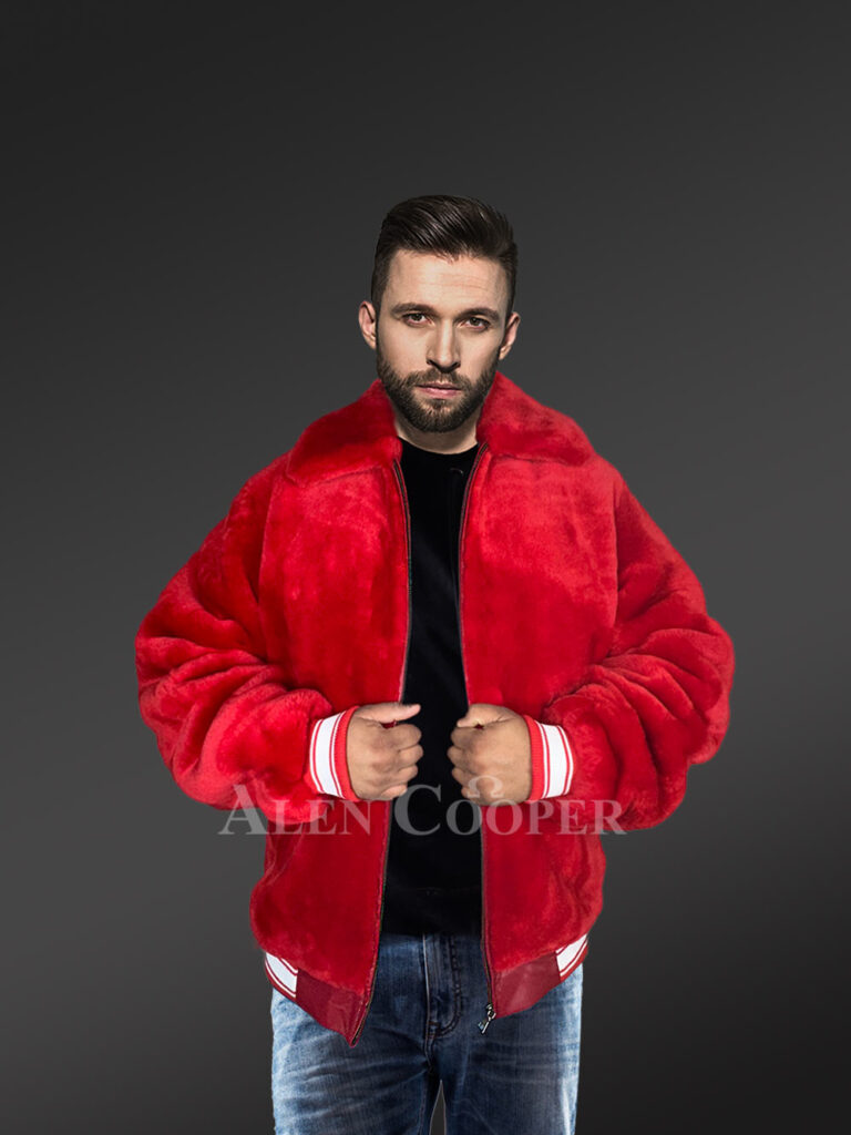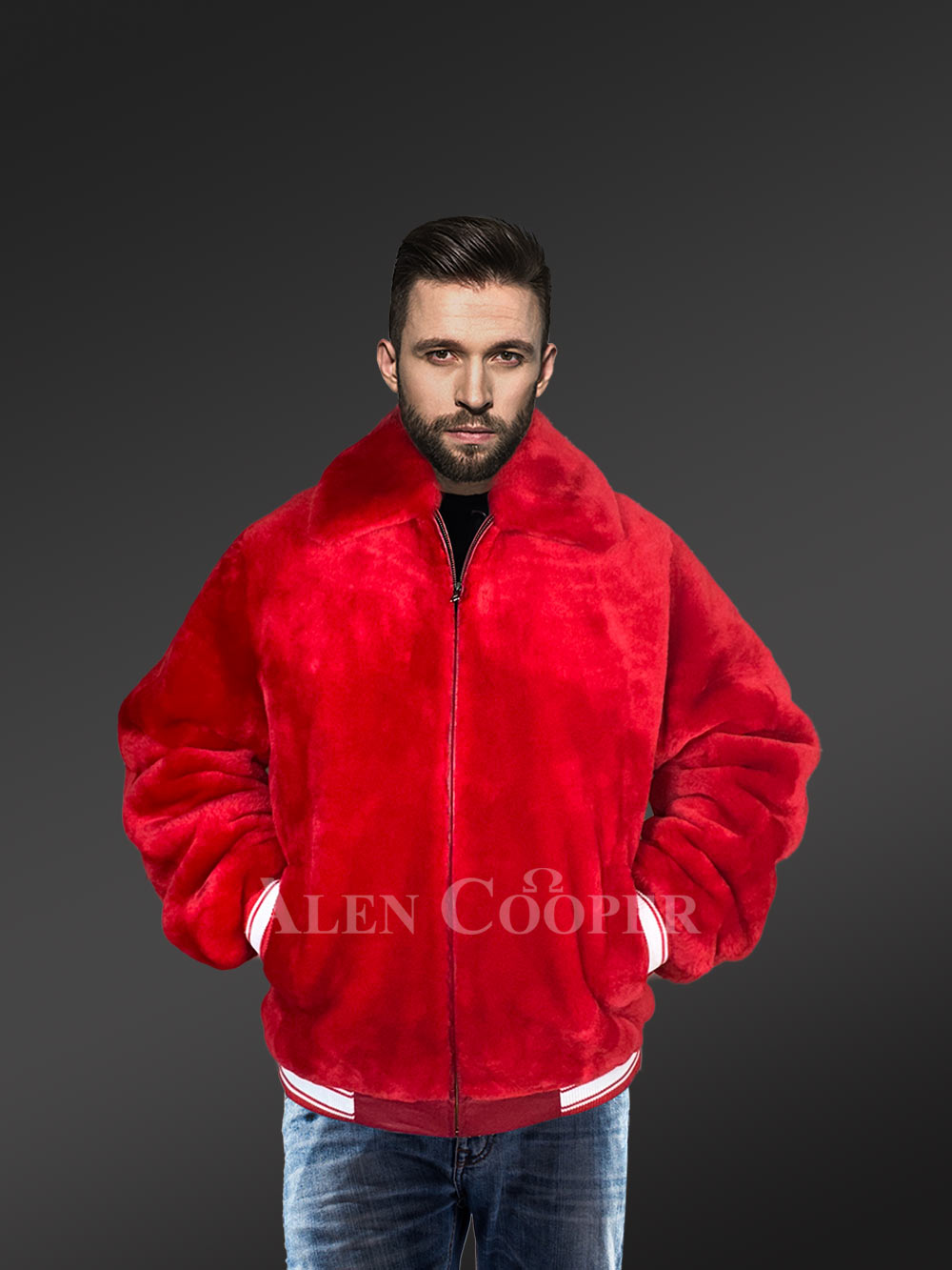Grab the opportunity to acquire the most fashionable winter wears by Alen Cooper! Seize the chance to experience full-time spring in winter. And so, to manifest the bliss, avail the option of looking the most stylish and being the most opulent in the enticing Bomber Varsity in Mouton for men. Â