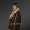 The mid-length Sheepskin shearling jacket for women is made from authentic pelts of shearling or lambskin. Crafted by hands, the jacket is soft and supple in texture. It offers sufficient warmth and insulation even in extreme cold weather conditions. The jacket has an outstanding light brown fur detailing that embellishes the overall looks and feel of the outerwear. Regardless of the cold weather, harsh or chilly, the jacket can be worn anytime. The impeccable winter wear range can be paired with any bottoms.