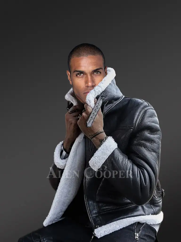 One may turn up the collar to cover the entire neck from cold wind. The leather straps are useful for adjusting the tightness. This classy reversible shearling jacket is handcrafted using the finest quality materials. For this reason, it will last for years with proper maintenance.