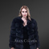• Women’s swanky paragraph-style fox fur coat with thermal elegance.