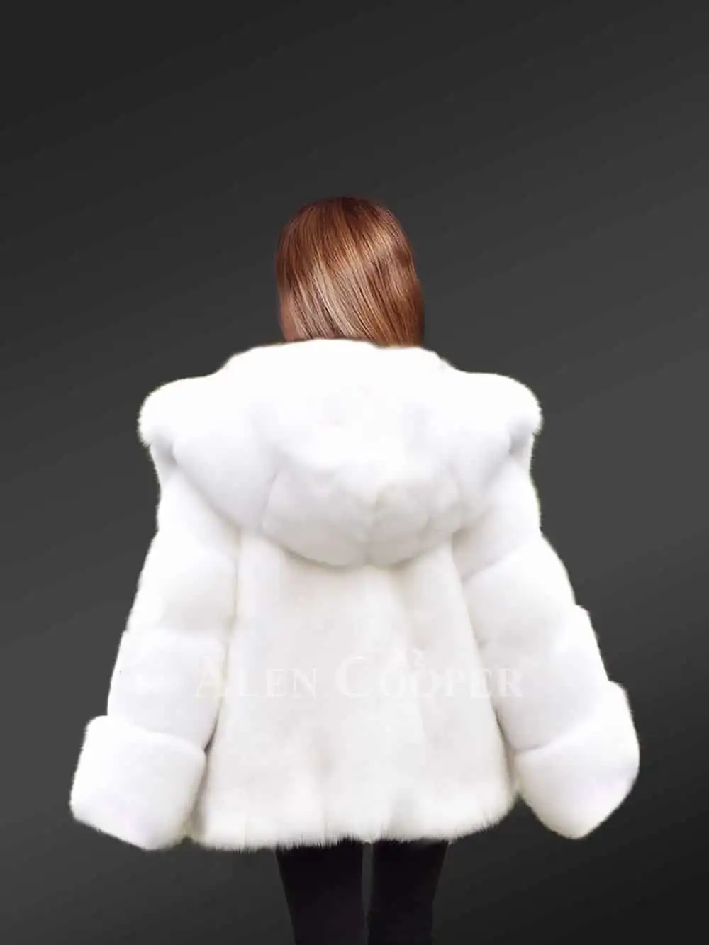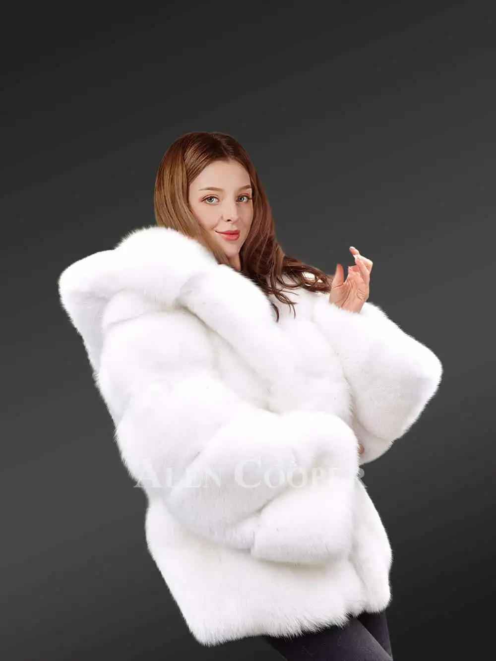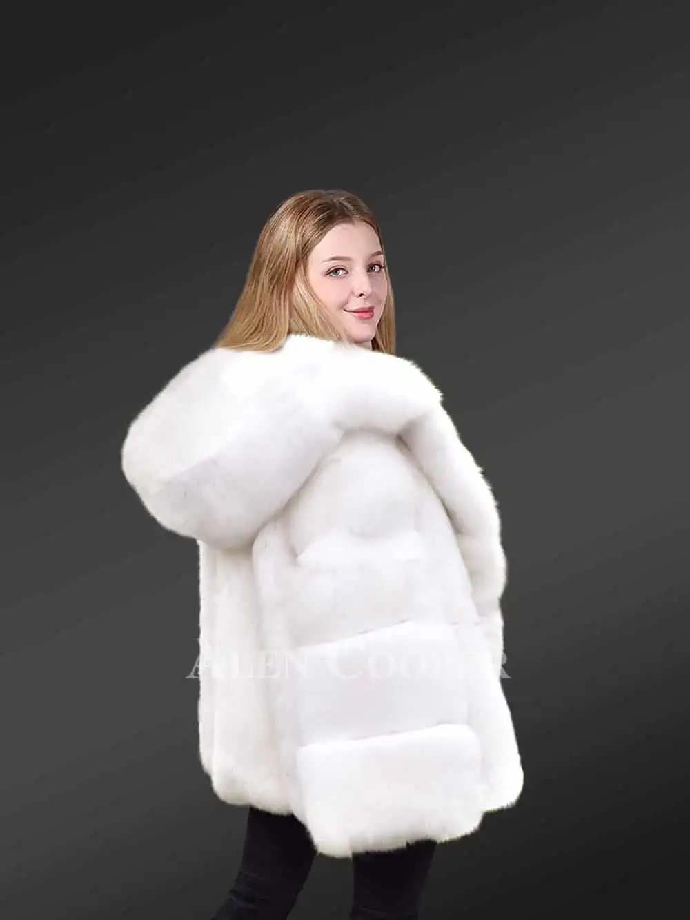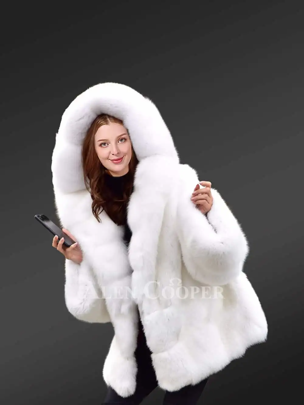 Elegant White Coat of Fox Fur with Hood for Any Occasion