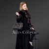 Made of Premium Quality Mink Fur, this authentic Black Coat is soft and silky in texture and is highly lustrous. This Full Length attire will provide you the warmth needed in severe winter climate, with an extra glamour.With Full Length Sleeves, the Cuffs and the Lapel is Trimmed with a shade of Brown Sable Fur which makes the Coat more gorgeous. Like Mink, Sable fur has been a highly valued item in the fur industry and is generally considered to have the most beautiful and richly tinted pelt. Sable fur is unique because it retains its smoothness in every direction it is stroked. The Coat has High-End Classical style with Waist Level Spacious Side Pockets to give you a cozy feel in cold days. This Lengthy Coat is Fully lined with a Satin Finish Lining and has a Hidden Hook and Loop Fasteners as a Closure to give a perfect fit look to the stylish women.