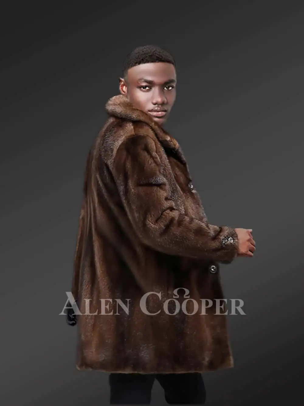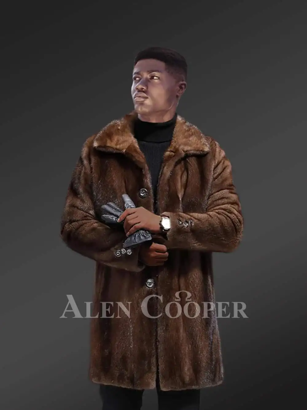 To begin with, this Exotic Brown 3/4 Length Men’s Mink Coat is warm and comfortable. The attire is the ultimate height of luxury, has a powerful look of masculinity. Indeed, the attire gives off ultimate height of luxury and a leaves a stark impression.