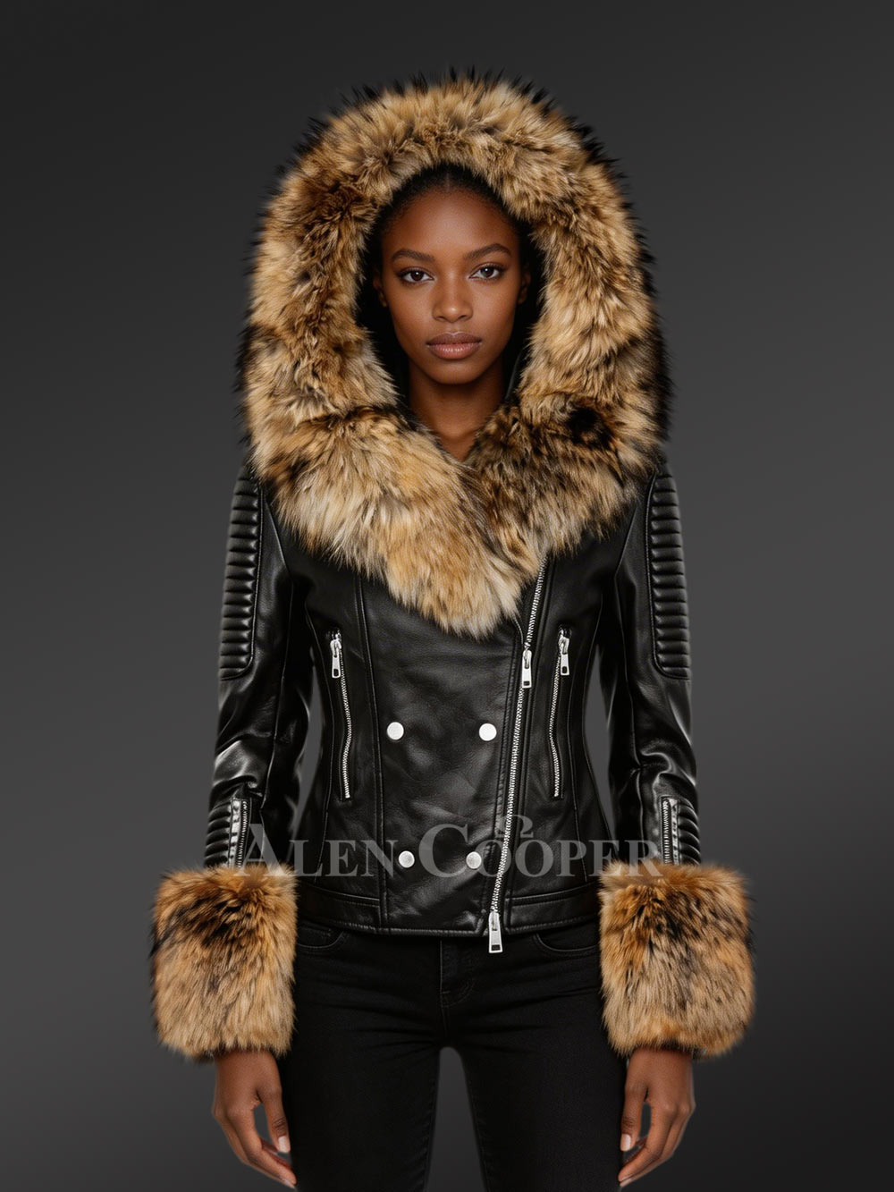 Leather Jackets with Fur Collar is always fascinating for both men and women. Wearing the Fur Leather Jacket outfit is never out of fashion. Especially fashionable people always look for new collection with more vibrant colors, different types of shapes and designs. This Women’s Fur Leather Jacket is made of Genuine lamb Leather. You undoubtedly stand out in the crowd wearing it.