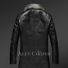 The warmth of the broad regular-style collar of this long coat. With notched lapels, it offers protection to the neck and front part of one’s body. Also, it enhances the aesthetic appeal of this outfit. Color of the fur creates a striking contrast against the black sheepskin leather.