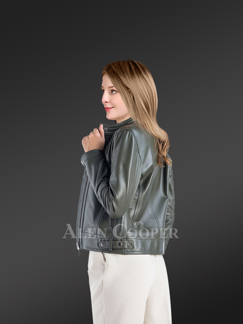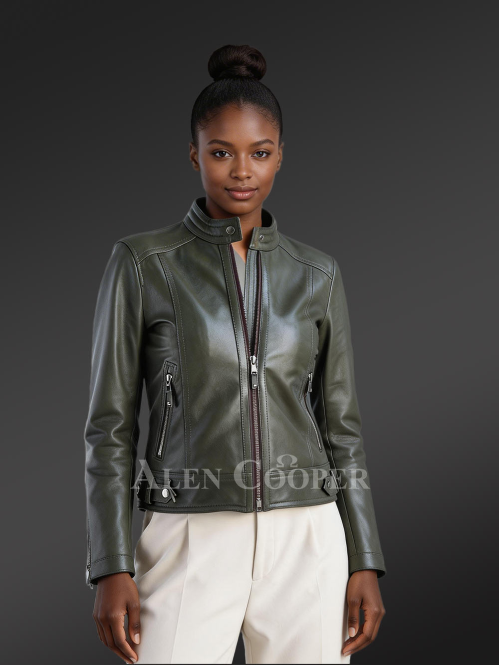 Alen Cooper deals with genuine fur and leather materials. These Genuine Leather Jackets in Olive are no exception. The olive green leather jacket is the perfect thing to wear when you feel like taking charge of your life. It is genuine leather with adequate warmth and practical functionality. The olive green jacket is a good match for black, white and other neutral shades.