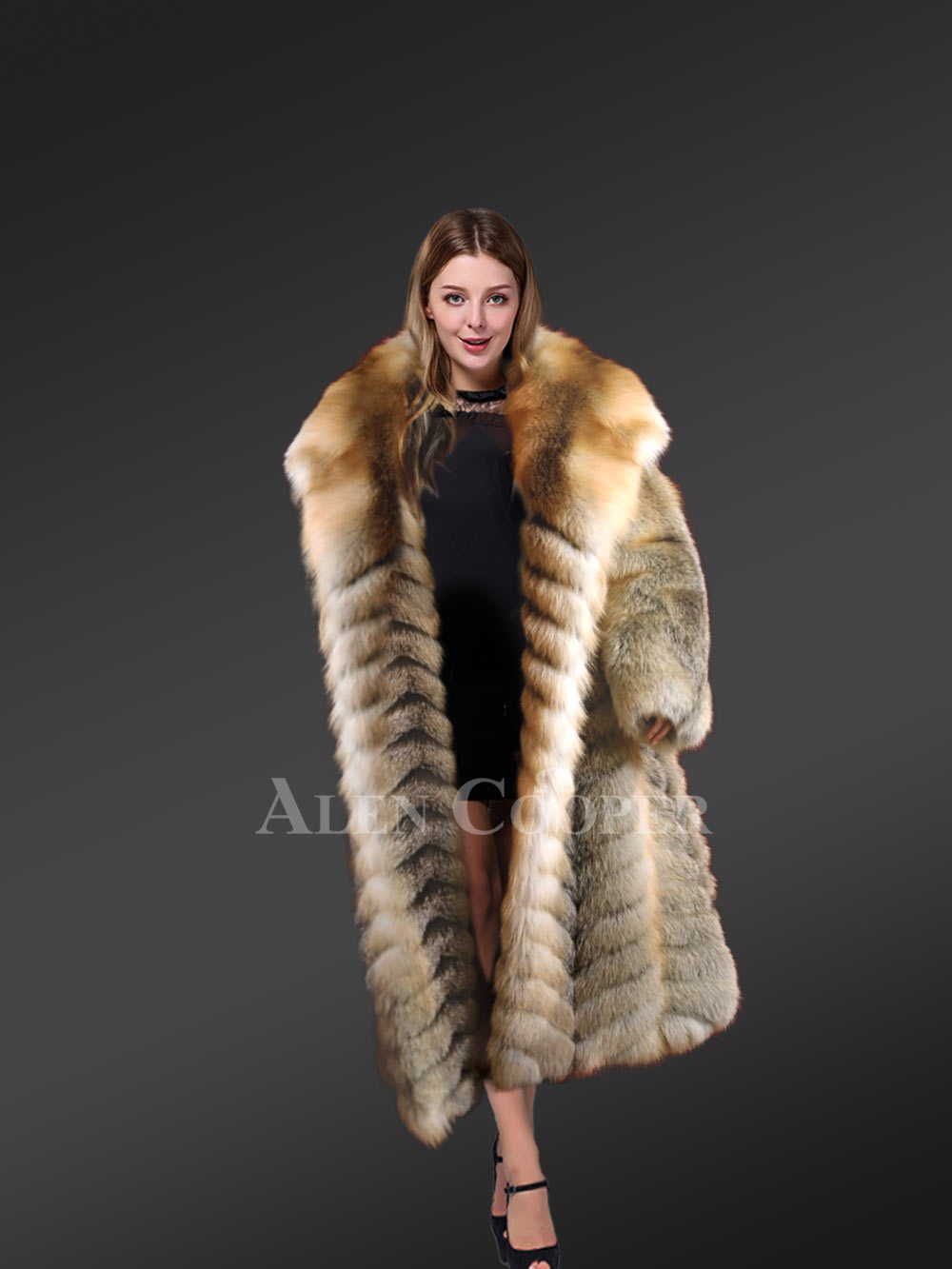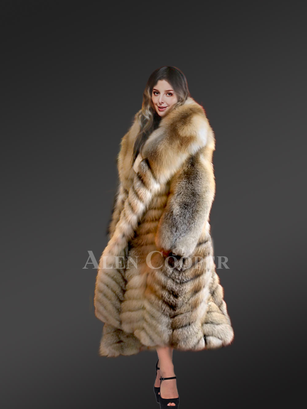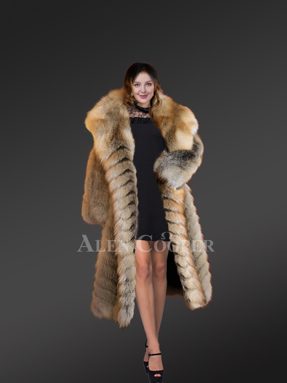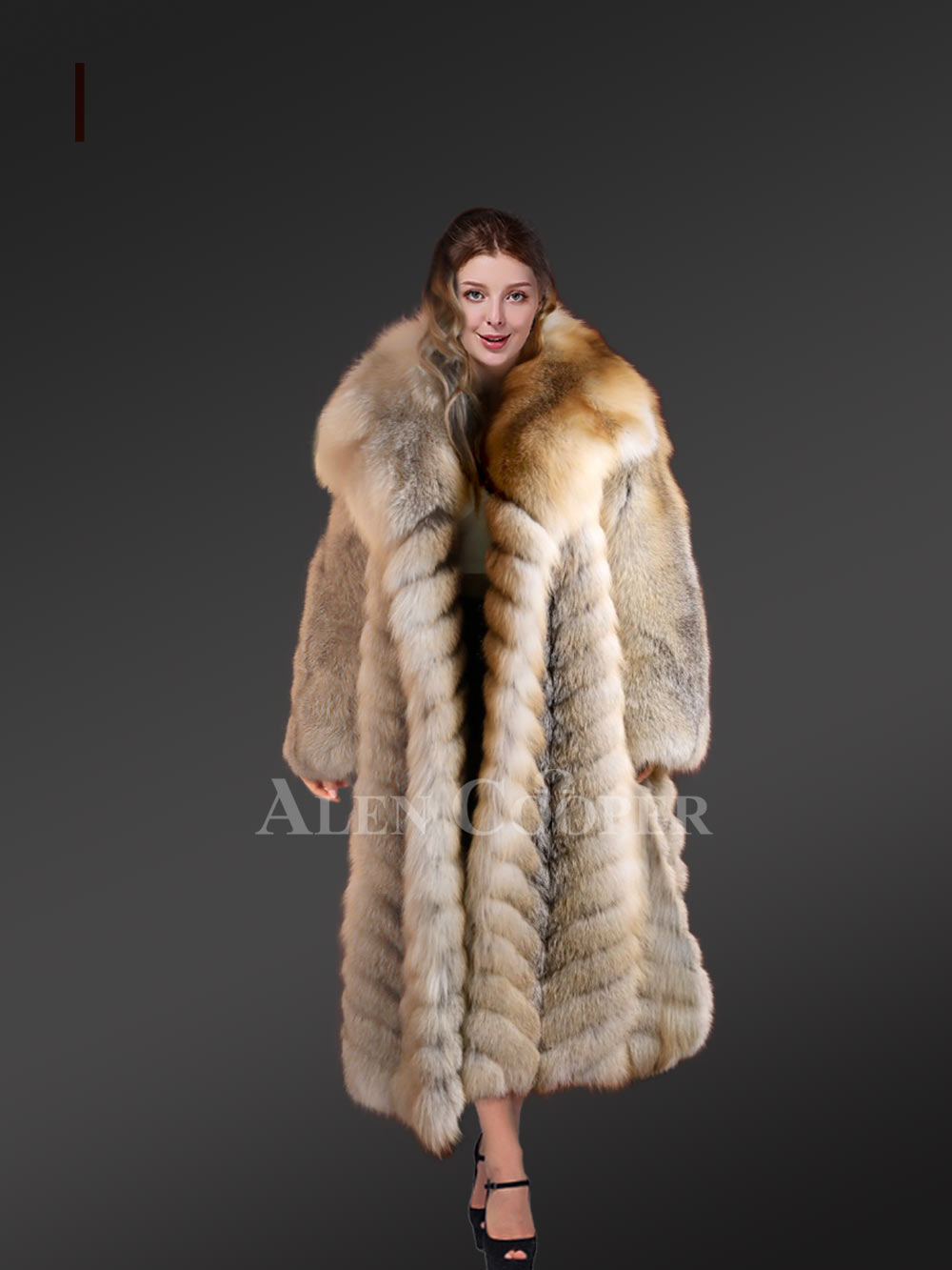 Delve into the magical world of Fox Fur Coats from Alen Cooper this winter. Keep looking your best while keeping toasty warm all through the festivities of cold winter in this Long Golden Fox Fur Long Coat.