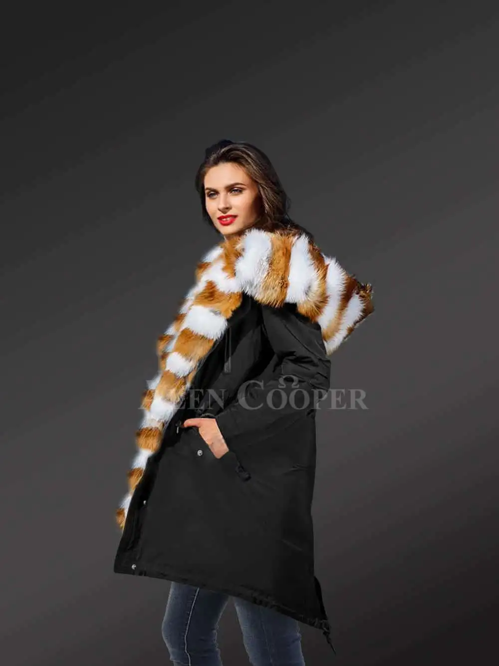 Arctic fox fur is renowned for being soft and supple. It is ideal in harsh chilly climatic conditions where the temperature drops as low as minus 40 degrees. The fur is also significantly lightweight and long-lasting. A neatly deigned range of fur black parka convertibles for females made from Red Arctic fox fur is redefining fashion trends. The product line is highly innovative and you can wear the item as a proper dress. The patches of fur in contrasting colors running along the trim of the hood and the frontline exhibit a great style making the parka as charming and attractive as you can imagine. You can wear it in a number of ways depending on your mood.