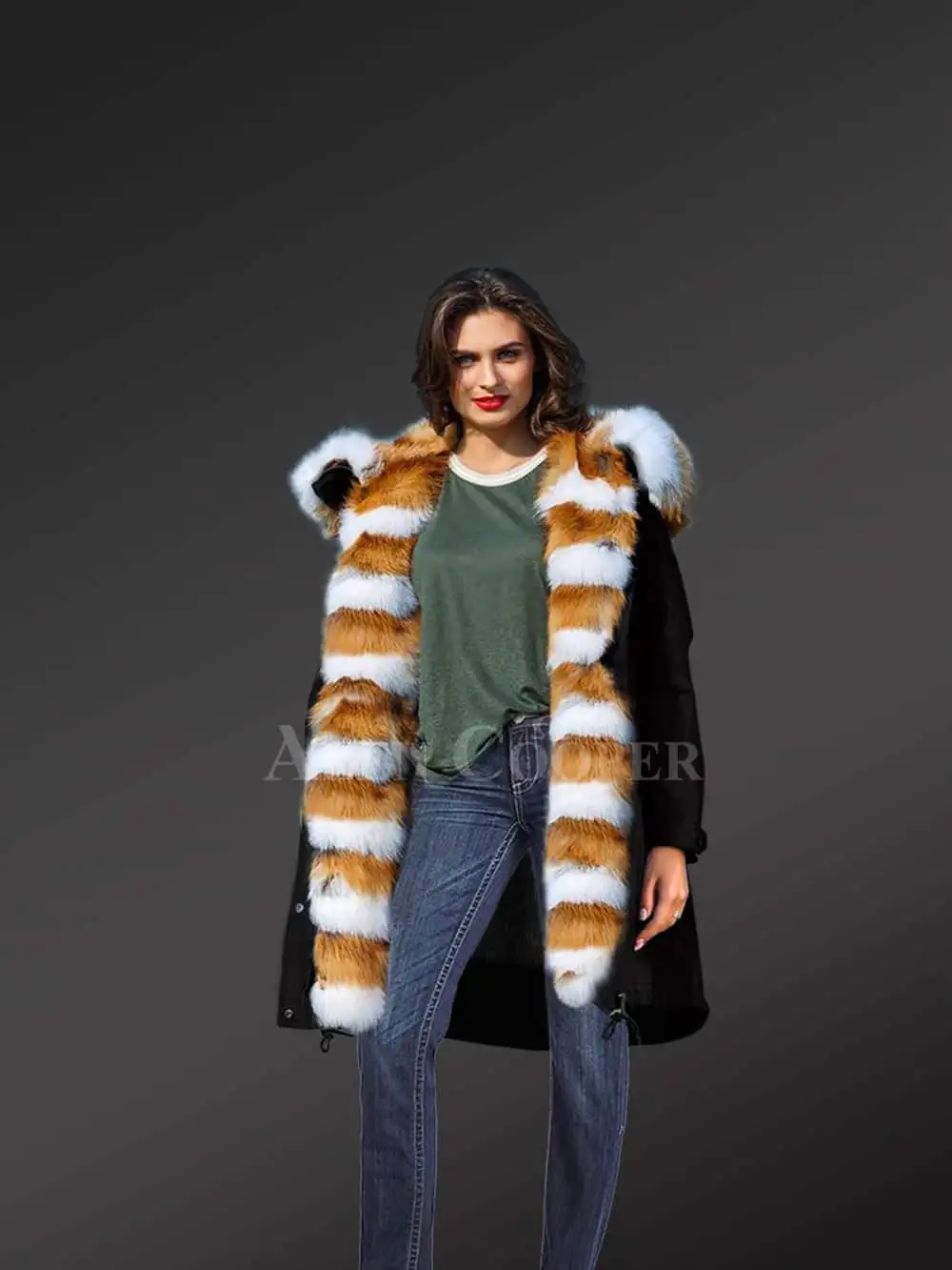 As both the liner and the frontline are detachable, you can easily slip on the inner Fox Fur Parka vest separately as a completely independent dressing unit. The product line is completely hand-stitched by highly skilled and experienced professionals. You can wear it to attend different types of social gatherings. At the time of placing a purchase order, you can custom choose both the color and the variety of the fur black parka for the inner vest. A wide and stunning range of options is provided to you for the purpose although the fur along the rim of the frontline and the hood stays static.