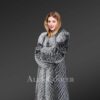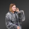 This luscious coat is made from superior Silver fox fur and features a dense finish with front open clip lock hooks. The wispy fur lapel adds to the charm of the winter coat. fur It has a zig-zag fur finish in alternating hues through the whole body for an elongated look. The premium quality Silver fox outerwear is a classy yet trending piece in the fashion industry. The elegance of the knee-length coat gives it a timeless look.