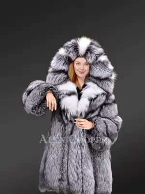 This classy winter wear looks stunning in pitch black with an aniline finish. The detachable shawl-style collar of arctic fox fur is also hued in black. The black-on-black color combination certainly increases its aesthetic appeal. Alongside beautifying the jacket, the collar protects the neck as well as the front part of the body.