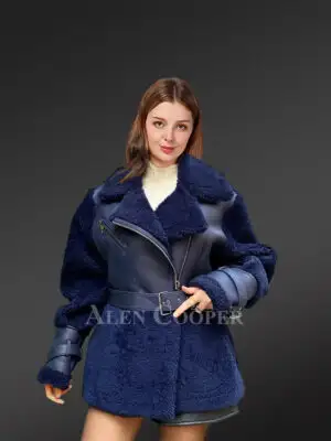 It also has a front jetted pocket with a buttoned flap. Thus, one can carry numerous essentials if necessary after wearing this winter wear. This cropped biker jacket is designed with a leather belt around the waist. It enhances the aesthetic appeal of this outerwear and one may use it to adjust the fitting.