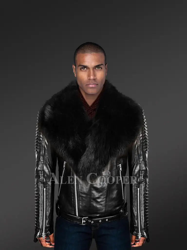 Blending human innovation and creativity with fashion, a striking range of genuine leather jackets for men has appeared recently. Crafted from 100% authentic leather biker jacket sports a plush black fox fur collar. Original plates of black fox fur are used in designing the collar and this single style feature makes the item look unbelievably chic and stylish.
