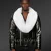 Leather Biker Jacket with Fox Fur Lapel – Rugged looks with Touch of Elegance